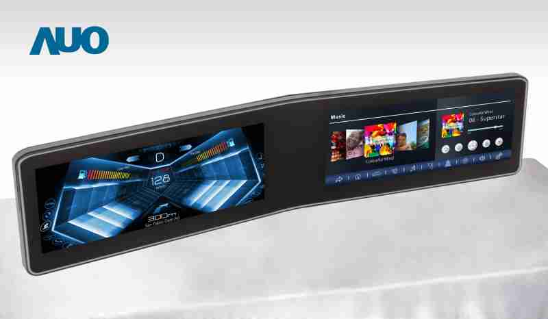 杏悦2 V 型曲面驾驶舱显示器,,,采全贴合拼接仪表板及中控台显示屏 |