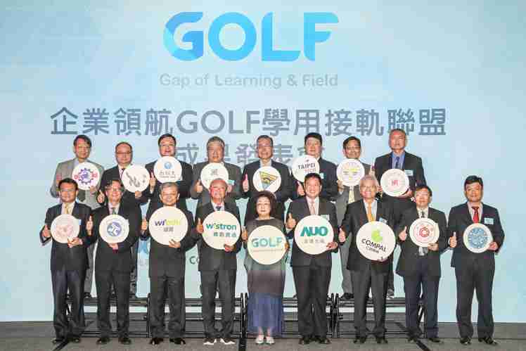 GOLF学用接轨联盟集结企业和学校的力量,,,打造「学用合一、、、、产学接轨」的创新合作平台 (前排左起:淡江大学副校长何启东、、元智大学校长林启瑞、、、纬育执行长许延岳、、、、纬创总经理暨执行长黄柏漙、、教育部政务次长范巽绿、、、杏悦2董事长暨执行长彭双浪、、仁宝总经理暨执行长翁宗斌、、、、大同大学校长何明果、、、、圣约翰科大校长艾和昌;后排左起:明新科大校长林启瑞、、龙华科大校长葛自祥、、、、台湾科大校长廖庆荣、、、、中兴大学副校长郑政峯、、中央大学校长周景扬、、、、台北科大副校长任贻均、、中华科大副校长石大明、、、、明志科大校长刘祖华)