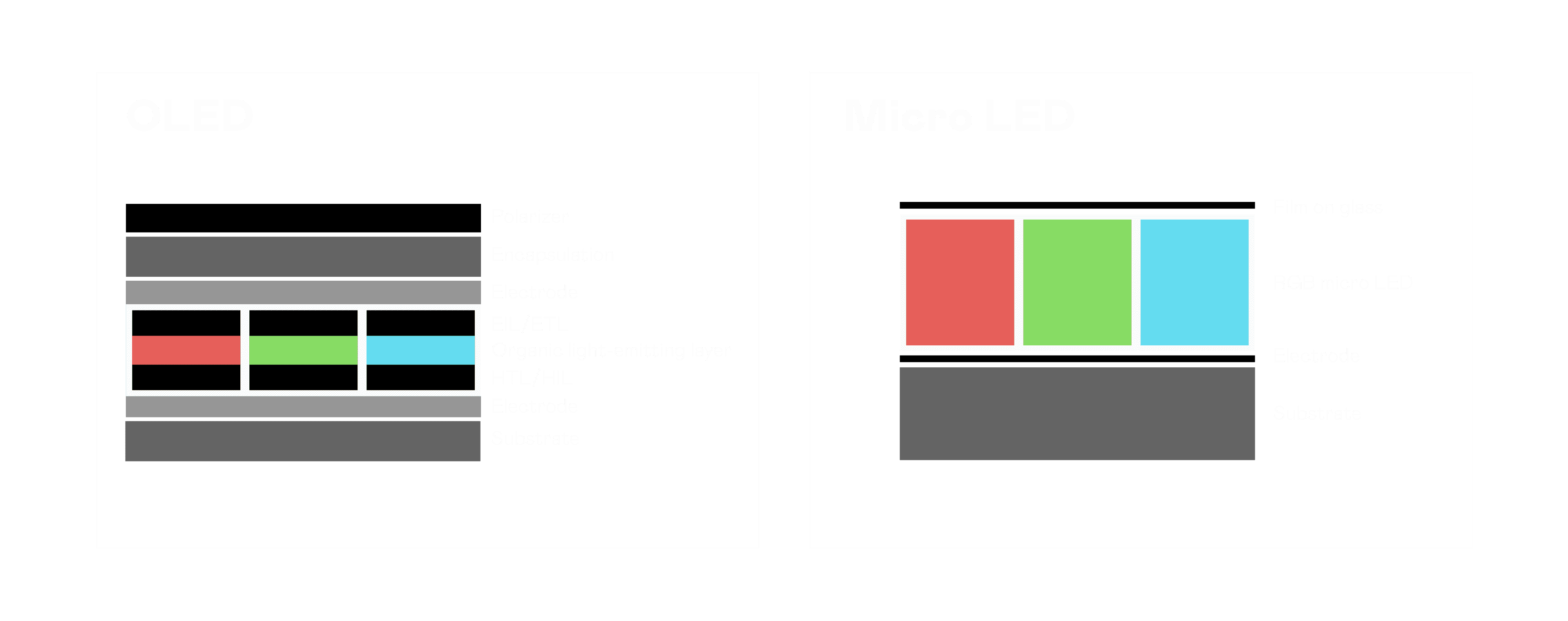 以 LED 做为显示画素,,,可让 LED 的发光效率发挥到极致,,,从而让显示器具备优异的亮度表现,,不论是在户外或室内,,均具备出众的显示效果。。。同时,,,,与使用有机材料的 OLED 相比,,,LED 具备更稳定、、、、寿命更长的特性,,,,不仅不会有画面烙印问题,,,而且更不容易出现故障、、坏点。。