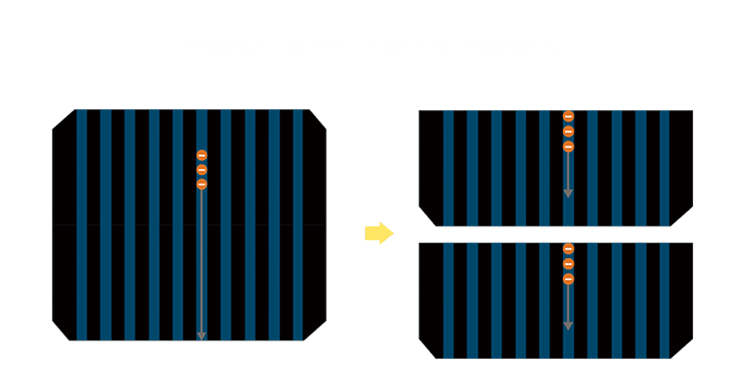 - 多条电极栅结构,,,,可有效降低外力对于电池的影响,,,,限制电池隐裂 (Micro-cracks) 范围,,,防止电流传输路径 (Current distribution) 之损坏进一步扩大。。